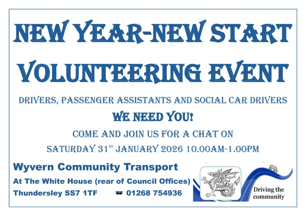 Wyvern Community Transport is a ‘not for profit’ organisation providing a door to door transport service to the residents of Rochford District and Castle Point Borough.